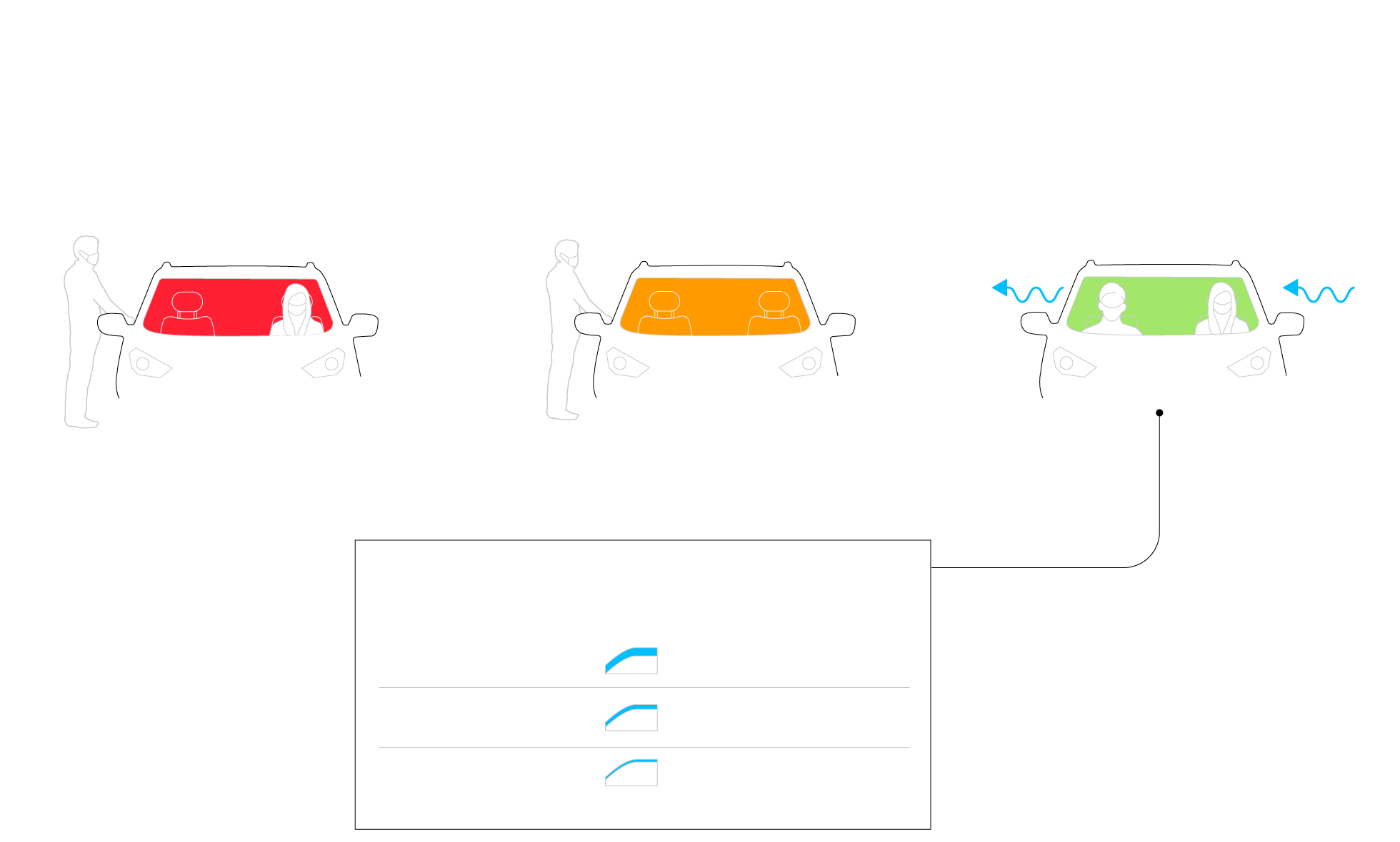 Methodology: The infrared camera images were recorded by the Leeds Environmental Fluid Dynamics Laboratory. In-car measurements were taken with an air quality monitor (Aranet Pro Home) in a vehicle with the windows closed and no ventilation last February 25. The risk of transmission was obtained using the airborne.cam simulator developed by the University of Cambridge and the calculations of air renewal inside the vehicle were obtained with an anemometer (David Higuera, industrial engineer and expert in installations.)