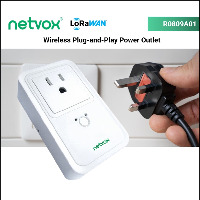 The R809A01 is a wireless power plug converter for indoor use. It can remotely control the output switch and detect the output power. It integrates the LoRa/FSK modulation communication wireless module SX1276, which can realize wireless remote control. R809A01 has a 10A/230VAC output load capability and is primarily used to measure electrical power consumption and wireless switch control. R809A01 supports the wireless module to send a power-off alarm signal to the gateway after power off